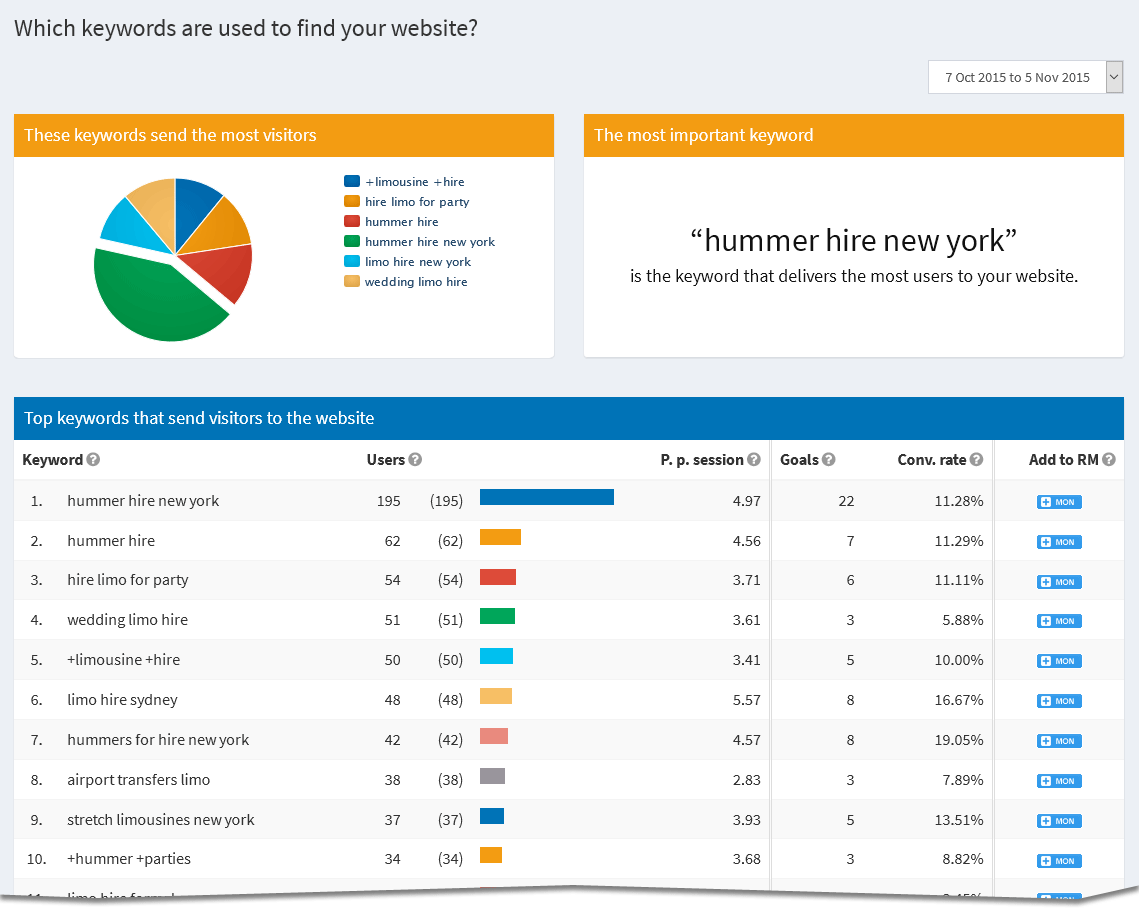 Of course, the analytics report also shows your top keywords and the conversion rates of these keywords: