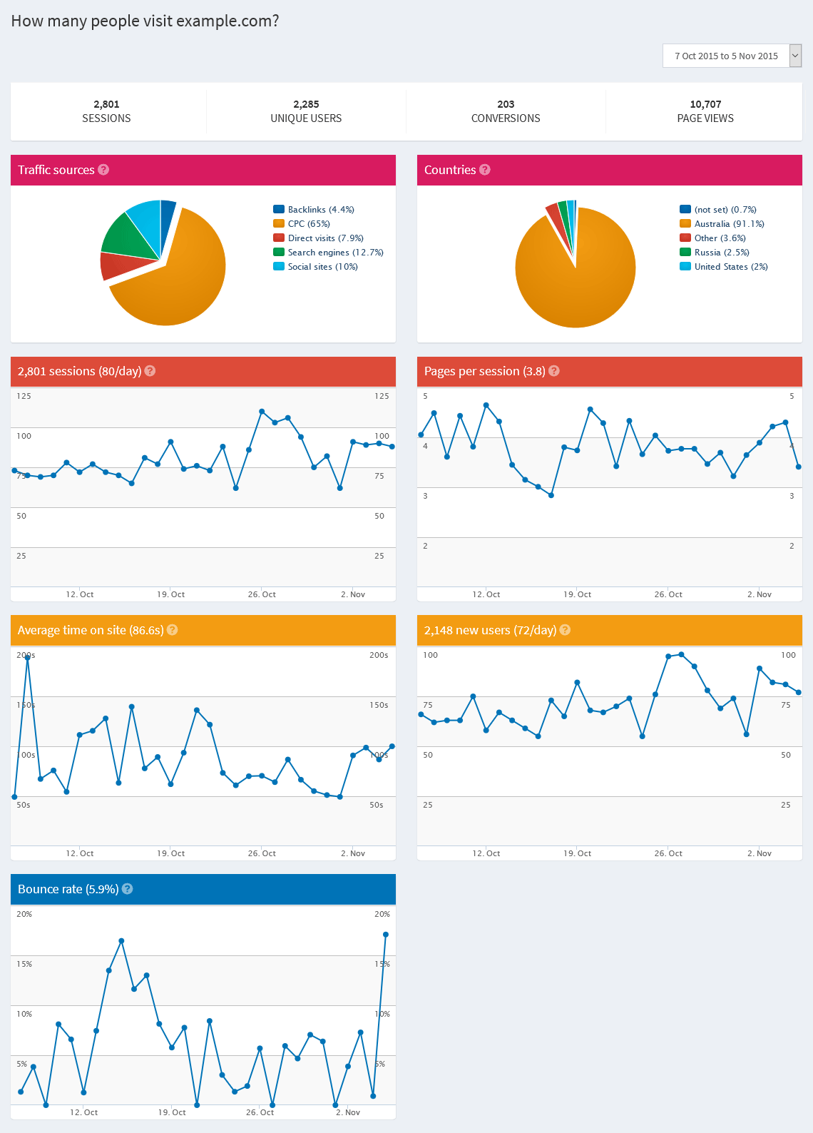 After connecting your Google Analytics account, you will see the following overview page: