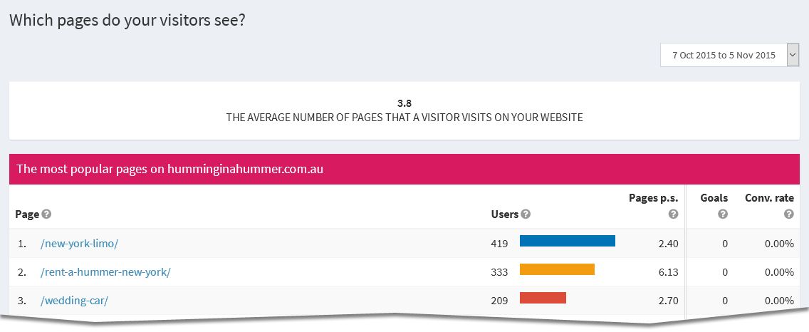The report shows the pages on your website that get the most visitors and the pages on your website that lead to the most conversions: