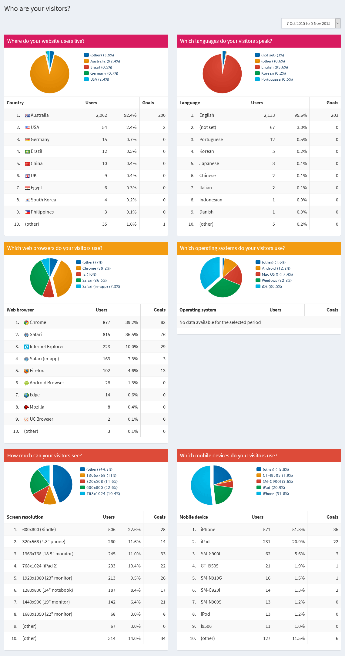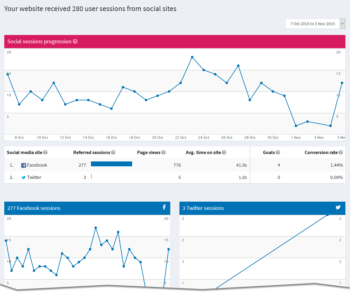 The analytics reports offer quick access to your social network statistics. Quickly see how many visitors you received from different social networks. You will also see how many of these people completed a goal on your website: